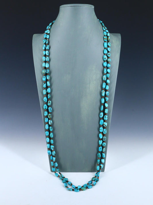 72" Extra Long Native American Jewelry Single Strand Turquoise Necklace