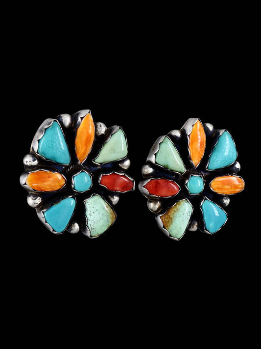 Navajo Spiny Oyster and Turquoise Post Earrings