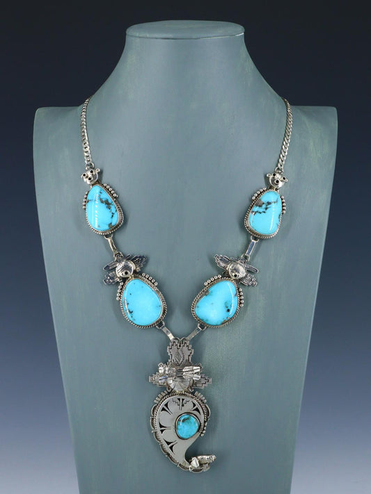 Native American Sterling Silver Campitos Turquoise Kachina Necklace