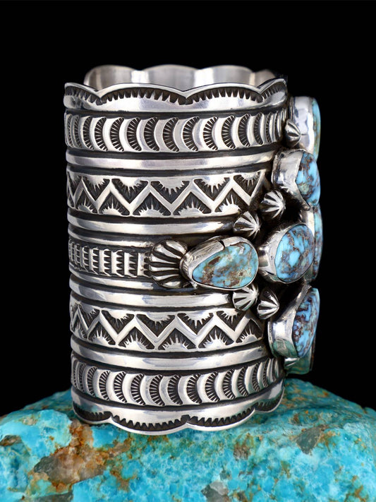 Handcrafted Native American turquoise cuff bracelets in sterling silver, featuring Royston, Kingman, Golden Hill, Sleeping Beauty, and inlay designs with bold weight and timeless character.