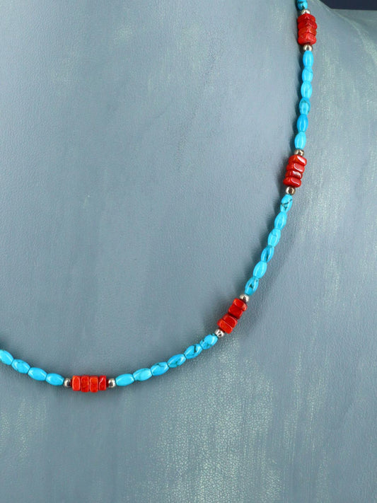 Santo Domingo Turquoise and Apple Coral Jocla Necklace