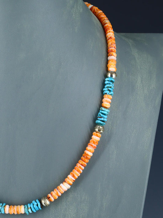 Native American Santo Domingo Turquoise and Spiny Oyster Necklace