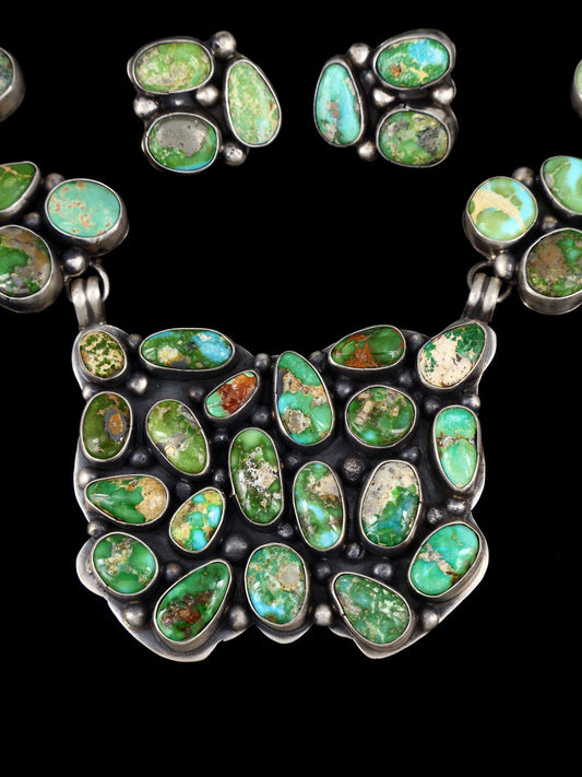 Native American Sonoran Gold Turquoise Sterling Silver Squash Blossom Necklace Set