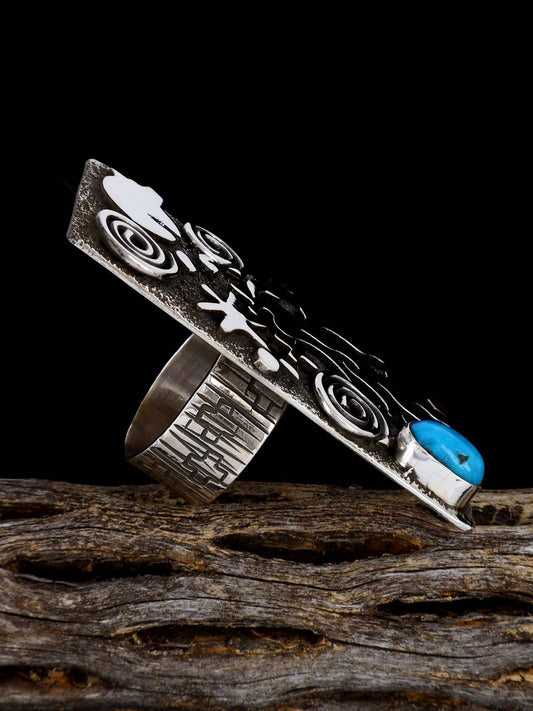 Navajo Turquoise Petroglyph Ring, Size 8 1/2